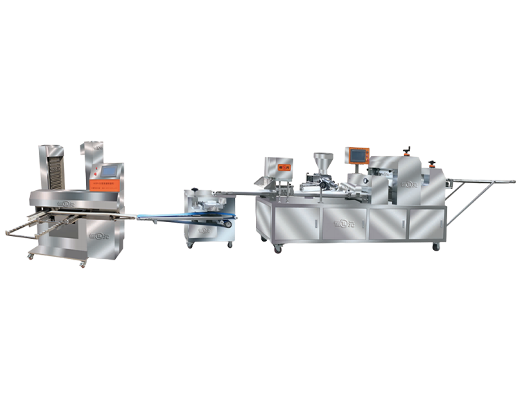 Slices of dough are brighter and have more stable quality after rolled and extended by roller and face welding device.each roller has adjustable device to set the thickness of dough slice to add or reduce product weight; dough slice onconveyor belt will be handled with strip or net shaped pattern through automatic handler, then rolled into strip shapethrough roller and auxiliary roller; stuffing can be added in dough rolling process; to make block-shaped products, startthe power supply of cutting table and set cutting length to determine the size and weight; velocity synchronous controlfunction can make the operation more convenient: forming machine can produce stufling hamburger and puff pastryautomatic tray arranging machine can make the operation more convenient for finished products. The unit is mainlused in producing bread, hamburger, puff pastry, French roll, French bread, pulled bread,caterpillar-like bread, lob-ster roll bread, honeycomb bread, drawbench bread, baguette. stuffing bread, stuffed hamburger and Swiss rol.
